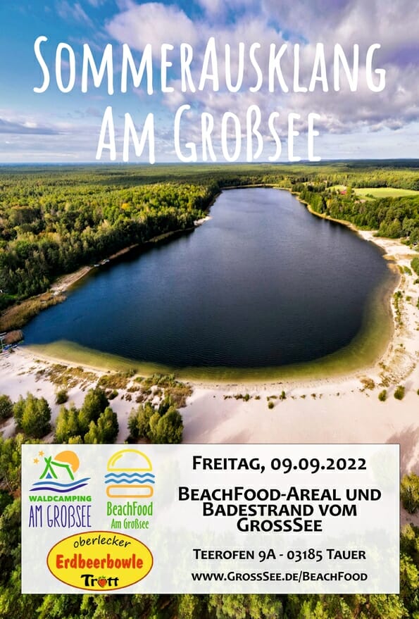 SommerAusklang am 09.09.2022 am Großsee! BeachFood sagt unseren Gästen „Danke für euren Besuch“ und unseren Gastronomen „Danke, dass ihr uns am Großsee versorgt habt!“ und BeachFood verabschiedet sich in die Winterpause. Thomas vom Getränke-Stand ist am Freitag für euch das letzte Mal in diesem Jahr euer Gastgeber, Janes Regio-EssPress ist bereits weitergezogen. Unser Kiosk im Seeblick bleibt noch bis 16.10.2022 im Rahmen der Campingplatz-Öffnungszeiten geöffnet.