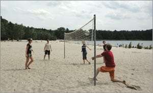 Ein Volleyball-Spielfeld am Beachstrand bietet großen Spaßfaktor.