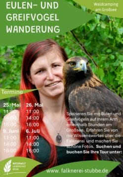 Falknerei und Euelenwanderung am Großsee im Peitzer LandSie können Ihre Wanderung direkt buchen für Termine im Mai, Juni und Juli.