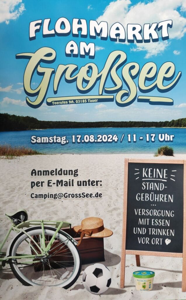 Am Sonntag, 24.08.2025, von 11.00 bis 17.00 Uhr lädt der Flohmarkt Großsee alle Trödelfans ins wunderschöne Peitzer Land ein. Direkt am Campingplatz „Waldcamping Am Großsee“, umgeben von Natur, kannst Du stöbern, feilschen und einzigartige Funde machen.