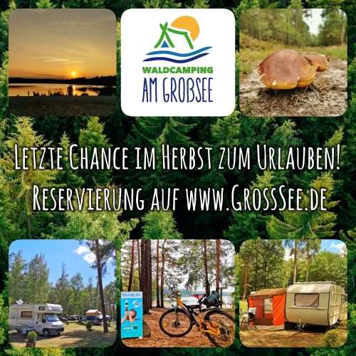 Bevor für den Campingplatz die Campingsaisone endet und alles in den Winterschlaf geht, besteht für jeden Camper noch die Möglichkeit im Peitzer Land zu urlauben! Wir haben noch ausreichend freie Urlaubsplätze für Wohnwagen, Wohnmobil, Dachzelt, Kleinbus oder Zelt und auch unsere Ferienunterkünfte (Bungalow und Mietwohnwagen) haben noch freie Zeiträume.