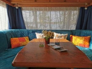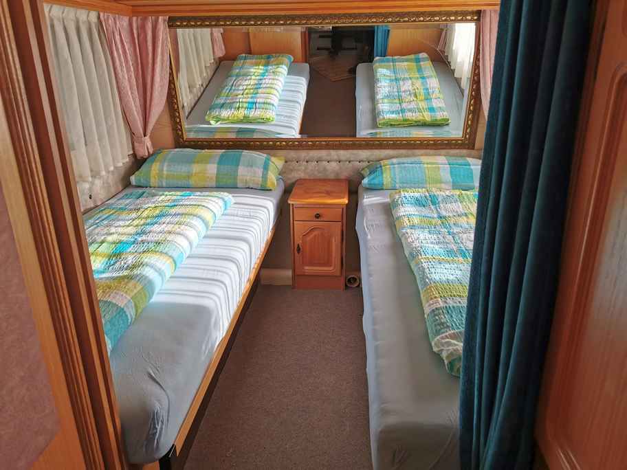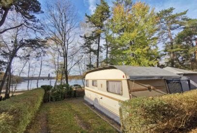 Der Mietwohnwagen „Seeblick“ ist für maximal 2 Personen ausglegt. Sie schauen direkt auf den Großsee und es sind nur wenige Meter bis zum Badestrand.