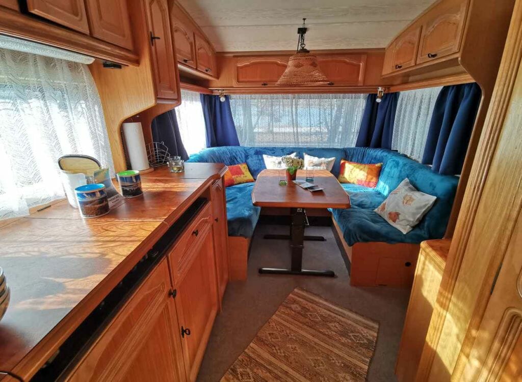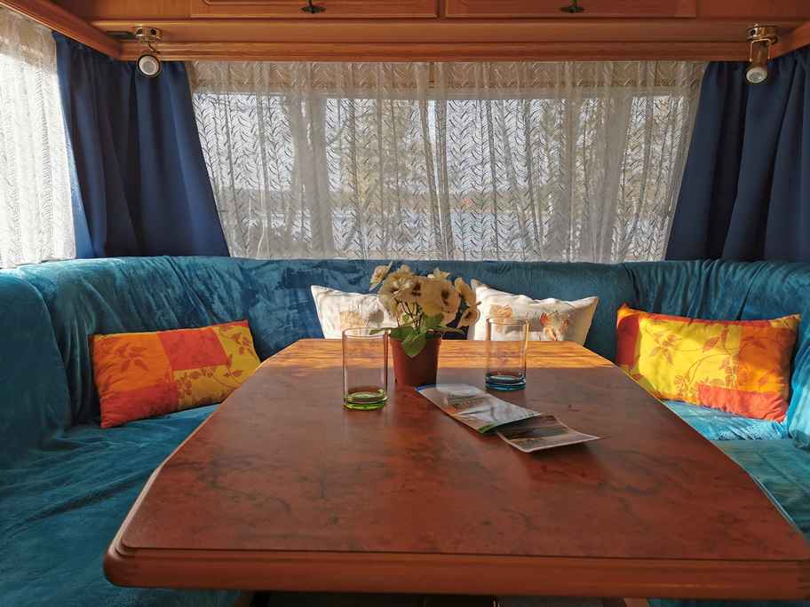 Der Mietwohnwagen „Seeblick“ hat eine einfache Ausstattung und ist für den Urlaub am Großsee wie folgt ausgestattet::