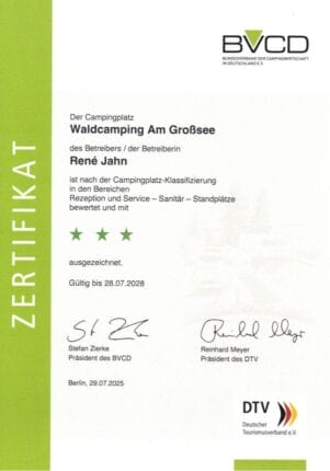 Unser Campingplatz im Peitzer Land ist nach den BVCD/DTV Kriterien seit 2021 klassifiziert.